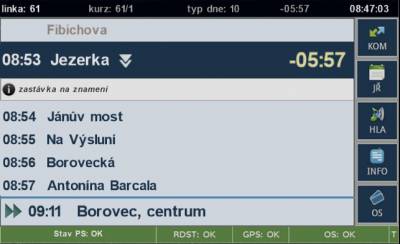 • podle hlášení, kdy po odjezdu ze zastávky stisknete klávesou C, čímž ohlásíte následující zastávku. V hlášení zazní informace, že následující zastávka je znamení.